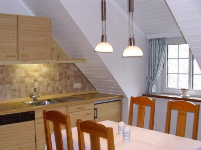 Die kleine Ferienwohnung für 2 Personen besteht aus: Schlafraum (Doppelbett) - Wohnzimmer (Fernsehen / Telefon) - Küchenzeile komplett mit Essecke - Bad (Dusche / WC)